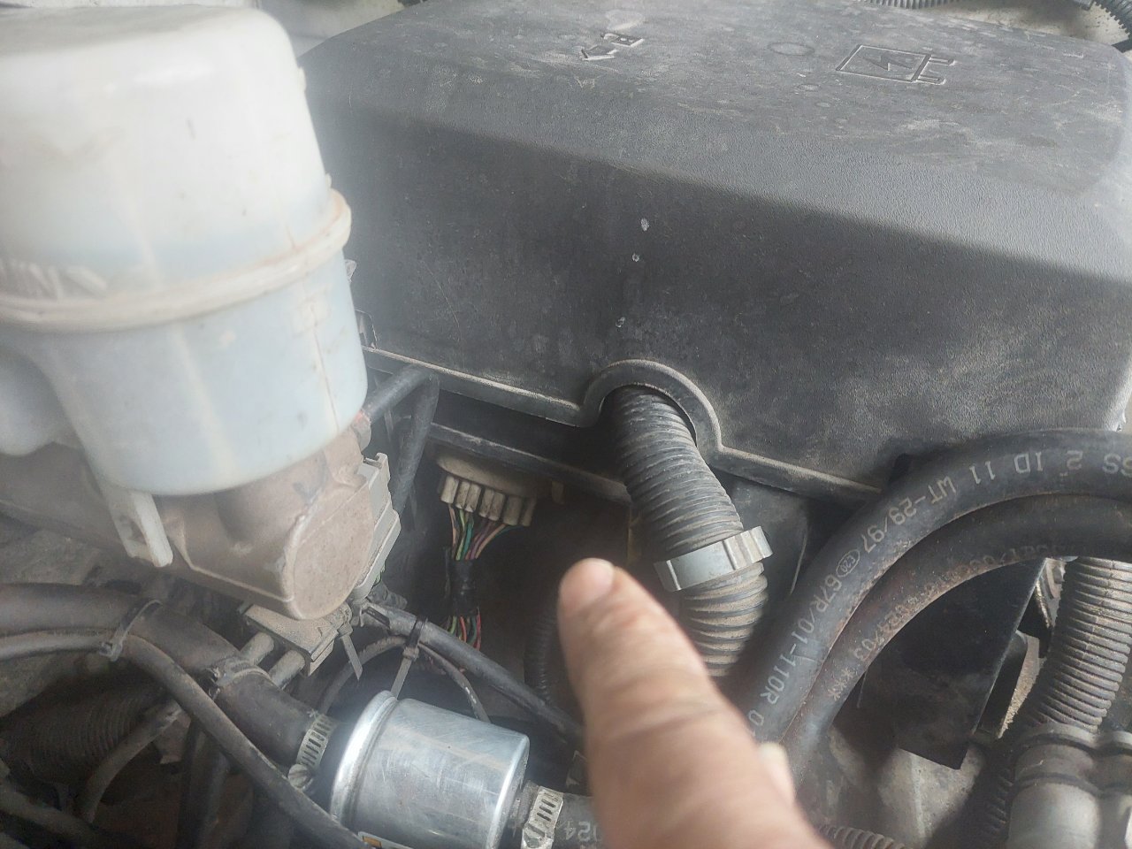 Утром завёл машину дистанционно , прихожу , вентилятор охлаждения двигателя работает на полную катушку , стрелка температуры лежит на нуле , кондишка не работает . На улице -25. Горит сообщение Engine Hot a/c off. Не работает датчик температуры или нет контакта. В моём случае накрылся датчик. Ездить в таком случае категорически нельзя. Температура двигателя влияет на фазовращатели и топливную смесь. Можно убить двигатель. Датчик находится в левой , по ходу, головке, возле щупа. Проводка обмотана фольгой и имеет защитный экран в виде трубки. Вынимаешь щуп и убираешь вакуумные трубки .что бы не мешали. Поставил какой нашёл , за 350 рублей , от УАЗа. Работает!!! Новый датчик видно на фото , с синей фишкой. При установке проливается где то пол литра ОЖ. И надо обязательно сбросить ошибки . И вуаля всё заработало .